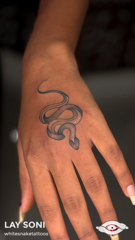 “Micro-Statements” – mighty meanings in mini canvas. At White Snake Tattoos, we perfect petite: finger symbols, behind-ear secrets, and ankle charms with maximum personality.